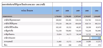 จากข้อมูลการจัดเก็บรายได้ ภาษีการรับมรดกในปี 2561 จัดเก็บได้ 219 ล้านบาท เพิ่มขึ้น 3.3 เท่าเทียบกับปี 2560 ที่จัดเก็บได้เพียง 65 ล้าน หมายความว่า มีการโอนมรดกในปี 2561 ขั้นต่ำ 4,300 ล้านบาท