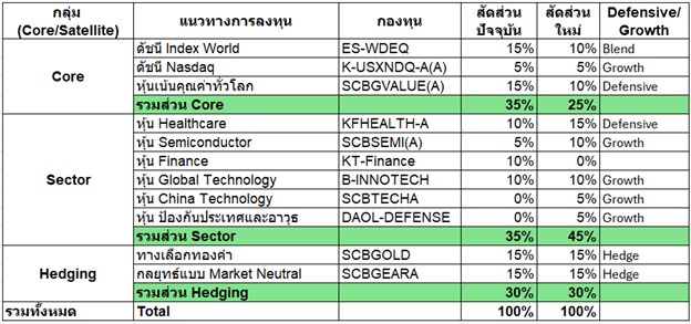 1. Core Portfolio: Underweight (ปรับลดน้ำหนักลงเหลือ 25%)