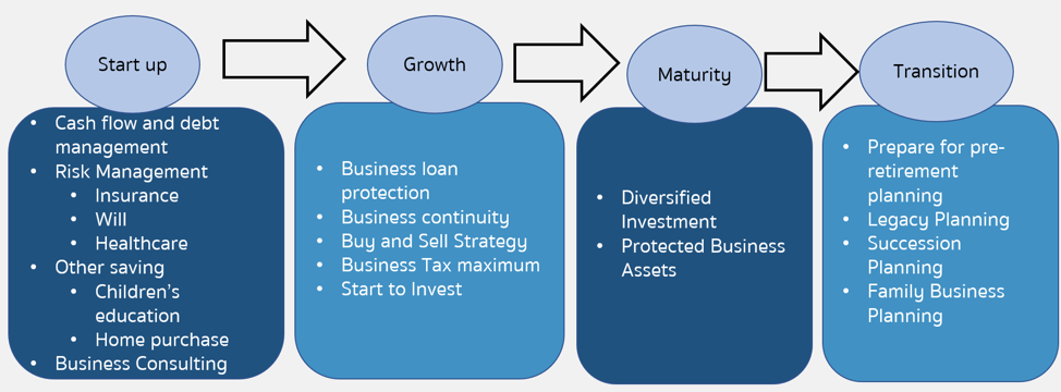 การวางแผนจะแบ่งตามวงจรชีวิตของเจ้าของธุรกิจ ดังรูป