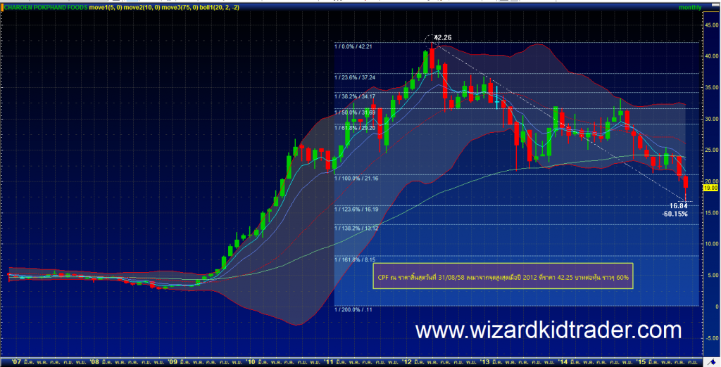 โหดมั๊ย….จากจุดสูงสุดเมื่อปี 2012 เป็นต้นมาจนถึงวันนี้ ราคาหุ้นลงมาแล้วราวๆ 60.15% จากจุดสูงสุดเทียบกับจุดต่ำสุดของเดือนสิงหาคม 2015