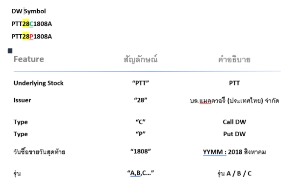 2. DW Symbol (สัญลักษณ์ในการซื้อขาย DW)