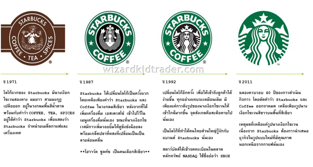 มาลองดูประวัติคร่าวๆของหุ้นตัวผ่านโลโก้บนถ้วยกาแฟที่เปลี่ยนไปแล้วถึง 4 รูปแบบกันครับ