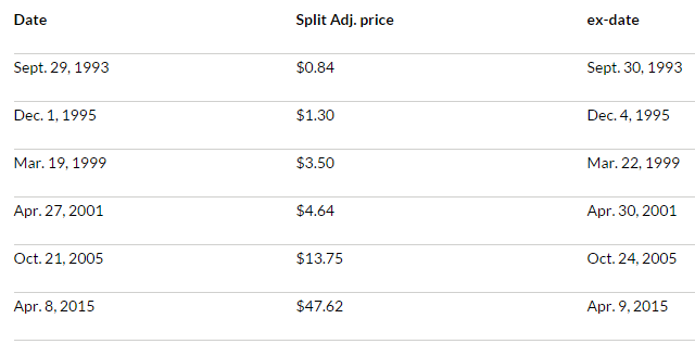ณ ราคาปิดเมื่อวันที่ 6/11/2015 ที่ 61.97 เหรียญดอลล่าห์สหรัฐต่อหุ้น จะให้ผลตอบแทนแล้วทันทีราวๆ 22,951.85% (อ้างอิงตัวเลขจากกราฟที่ให้มาน่ะครับ)