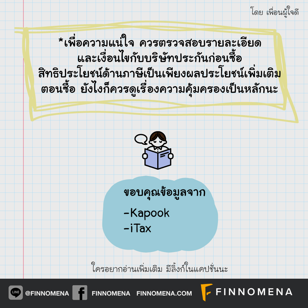 และอย่าลืมว่าสิทธิประโยชน์ด้านภาษีเป็นเพียงผลประโยชน์เพิ่มเติม ยังไงตอนซื้อเราก็ควรดูเรื่องความคุ้มครองเป็นหลักนะ