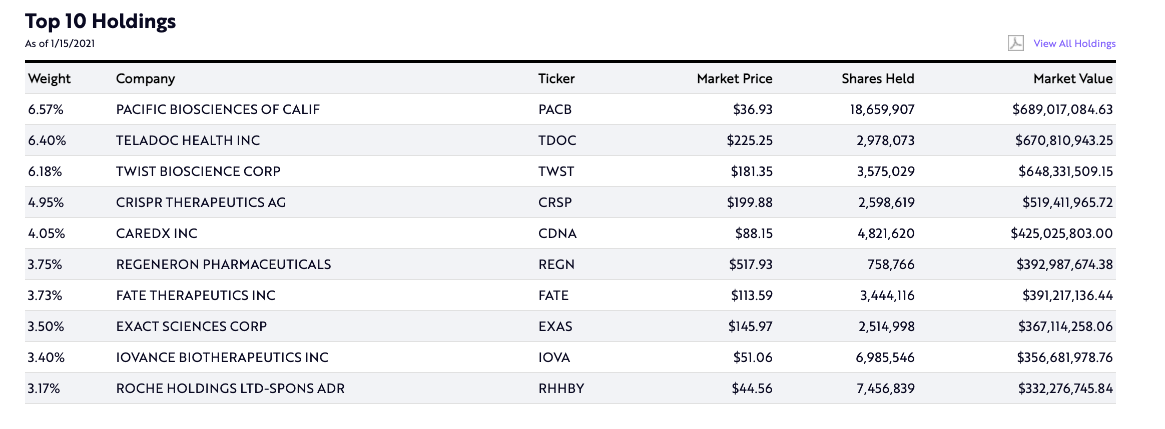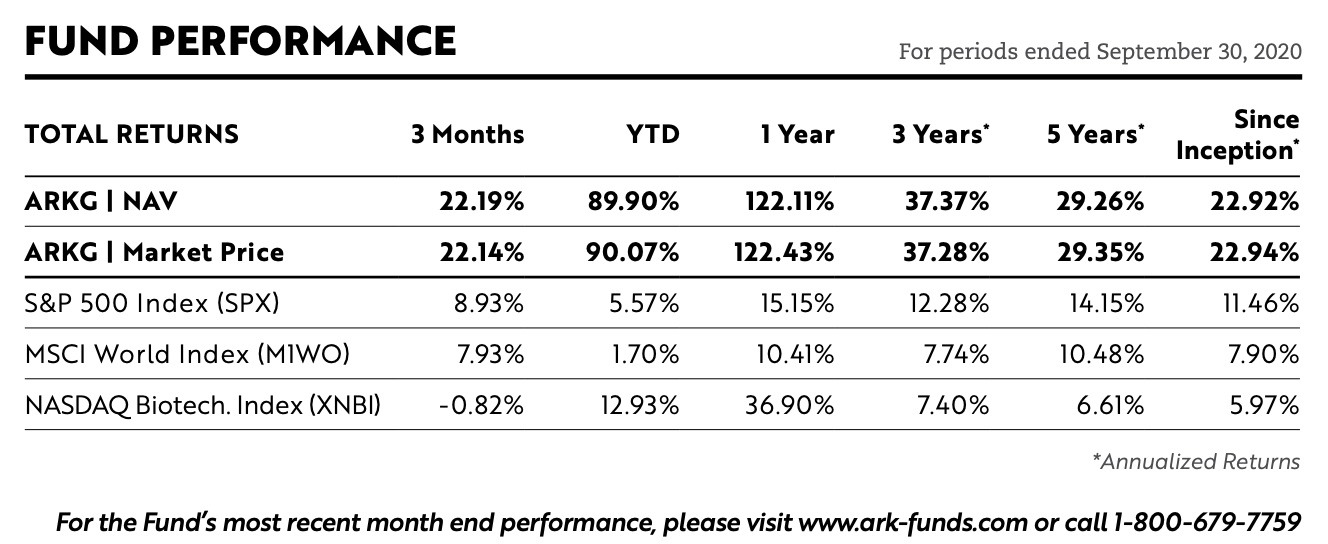 เอาล่ะ เมื่อกองทุนหลักคือ ARKG เราจึงควรไปเจาะกองทุนนี้กันสักหน่อย
