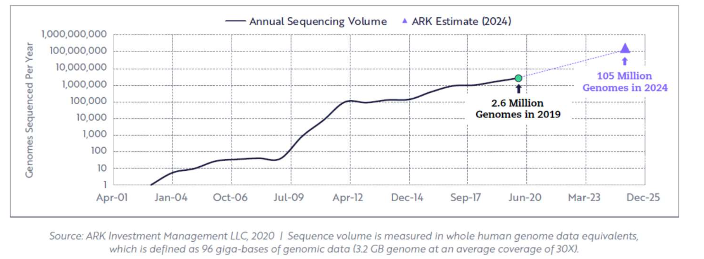 ต้นทุนของ Sequencing นั้นได้ลดฮวบจากตัวเลข 9 หลัก เหลือเพียงไม่กี่ร้อยดอลล่าร์เท่านั้น และมีการคาดการณ์ว่าทางคลินิกจะทำ NGS มากขึ้นในอนาคต โดยจำนวนอาจสูงกว่า 100 ล้านจีโนมเลยทีเดียวในปี 2024