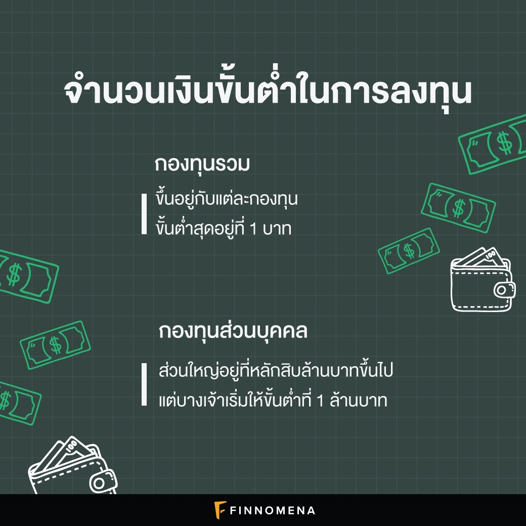กองทุนรวม: ขึ้นอยู่กับแต่ละกองทุน ขั้นต่ำสุดอยู่ที่ 1 บาท