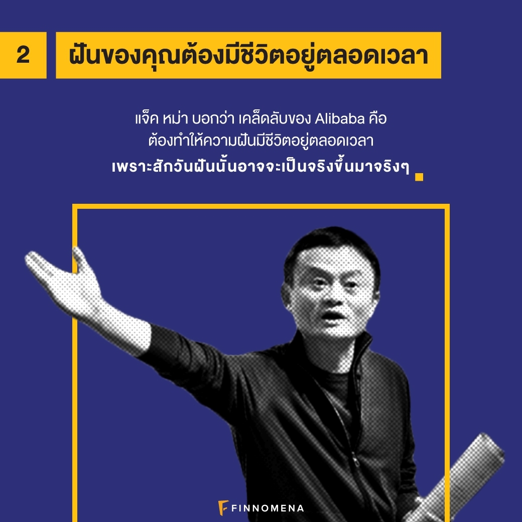 แจ็ค หม่า บอกว่า เคล็ดลับของ Alibaba คือต้องทำให้ความฝันมีชีวิตอยู่ตลอดเวลา เพราะสักวันฝันนั้นอาจจะเป็นจริงขึ้นมาจริงๆ