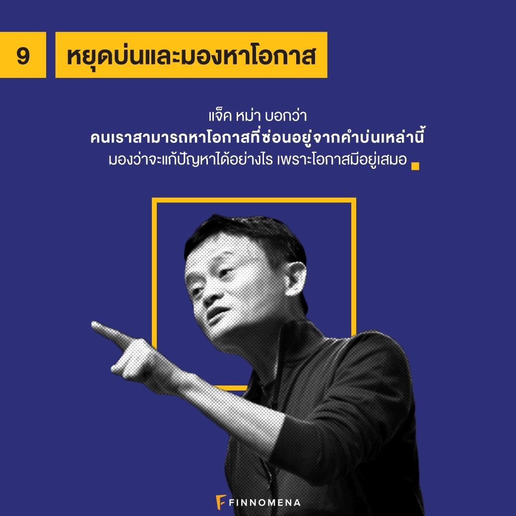แจ็ค หม่า บอกว่า คนเราสามารถหาโอกาสที่ซ่อนอยู่จากคำบ่นเหล่านี้ มองว่าจะแก้ปัญหาได้อย่างไร เพราะโอกาสมีอยู่เสมอ