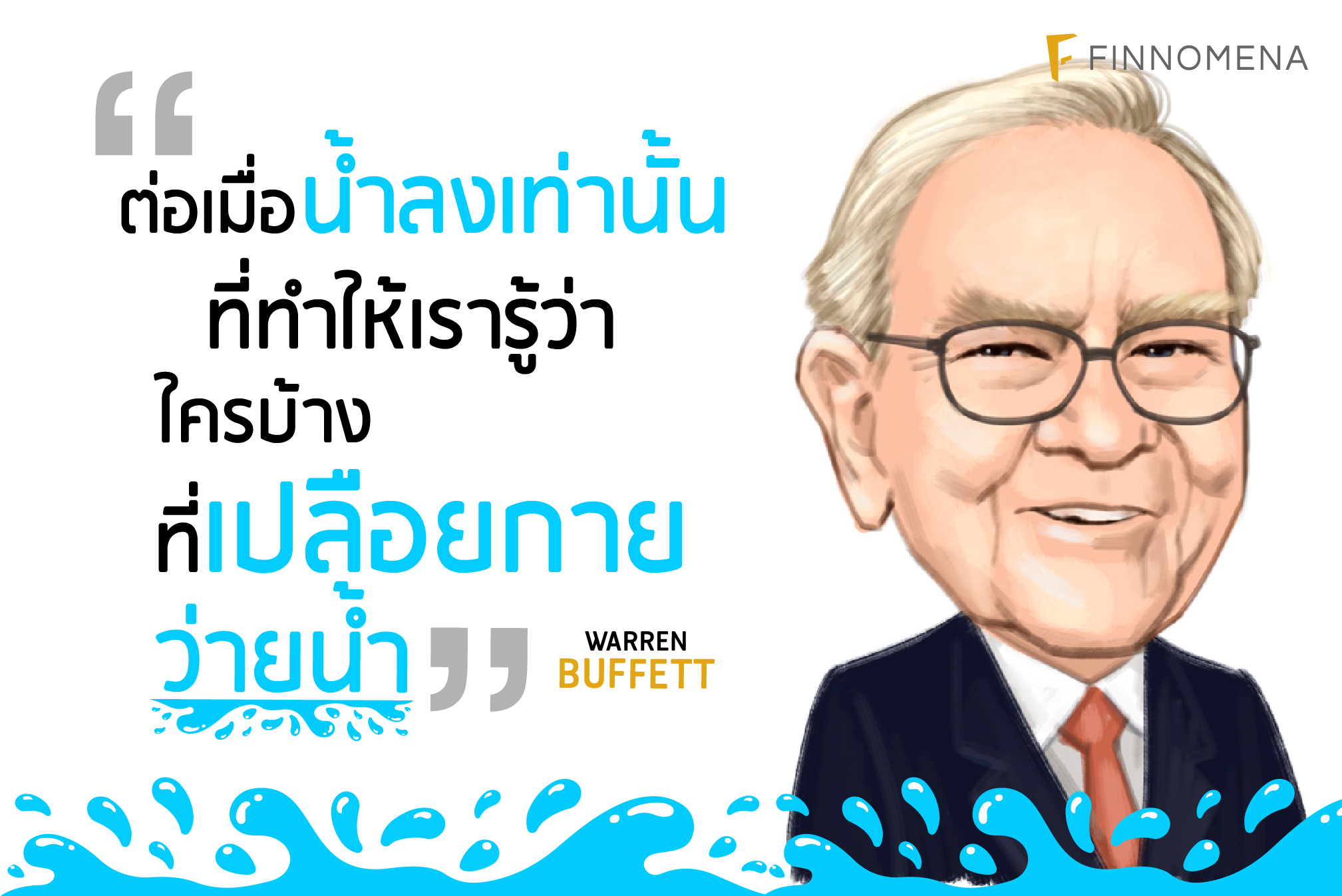 เศรษฐกิจที่รุ่งเรืองก็เหมือนนํ้าที่ขึ้นสูง คุณไม่มีวันรู้ว่าคนที่ว่ายนํ้าอยู่เปลือยกายหรือไม่? แต่เมื่อใดก็ตามที่เศรษฐกิจยํ่าแย่ระดับนํ้าลดลงคุณจะรู้ทันทีว่าใครคือคนที่เปลือยกายว่านํ้า ธุรกิจไหนที่ไม่ใช่ของจริง!
