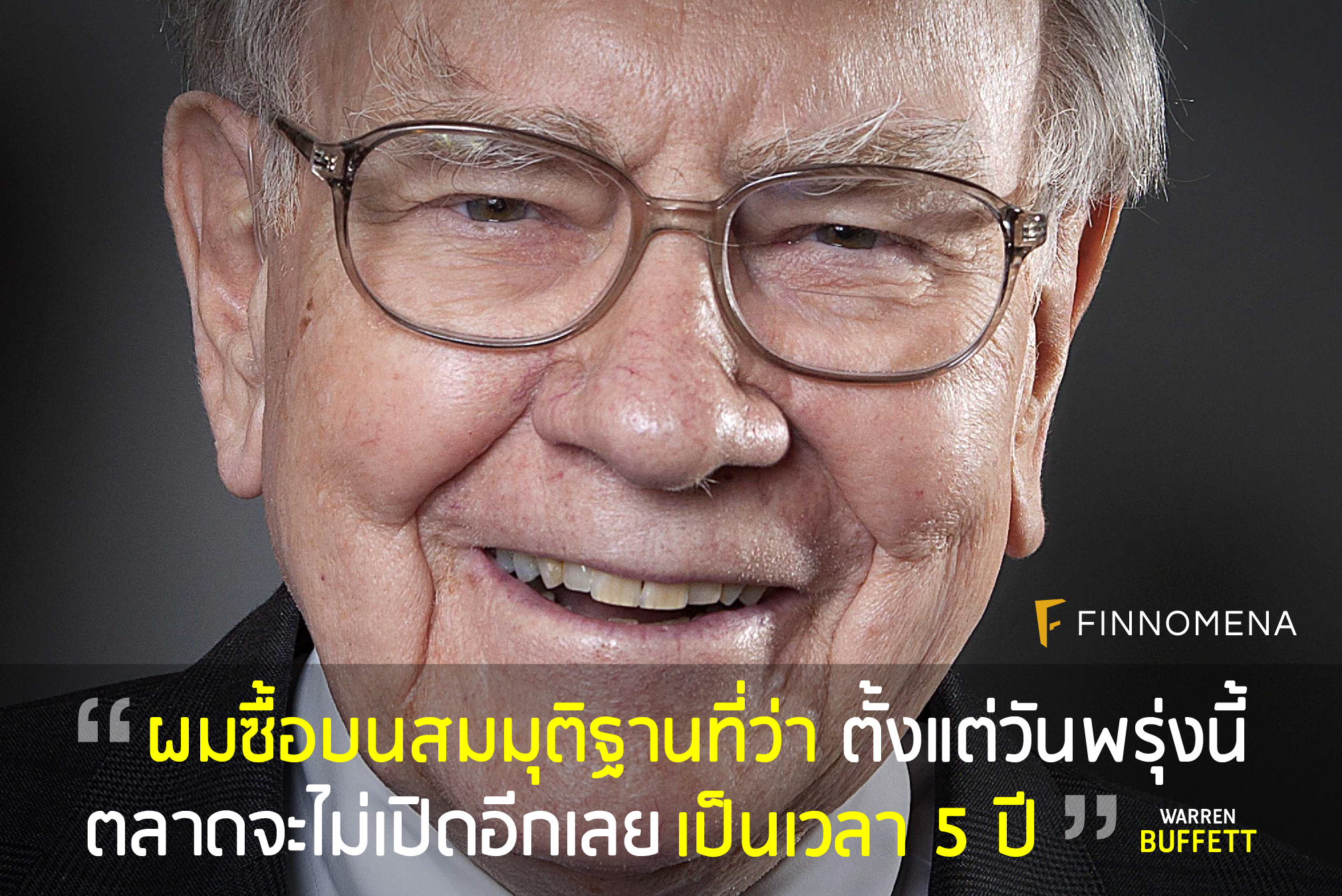 บัฟเฟตต์ลงทุนในหุ้นระยะยาว เขาสามารถจะลงทุนได้อย่างสบายใจแม้ว่าตลาดหุ้นจะไม่เปิดอีกเลยเป็นเวลา 5 ปี เพราะเขาเองก็ไม่คิดจะขายในระยะเวลาอันสั้นอยู่แล้ว บัฟเฟตต์มุ่งเน้นไปกับการวิเคราะห์กิจการและติดตามการดำเนินธุรกิจว่าธุรกิจของเขายังมีผลประกอบการที่ดีอยู่ไหม? ในขณะที่คนทั่วๆไปมุ่งเน้นอยู่กับการหาว่าหุ้นของพวกเขามีราคาเท่าไหร่? ซึ่งไม่ได้บ่งบอกหรือช่วยอะไรในการลงทุนเลย