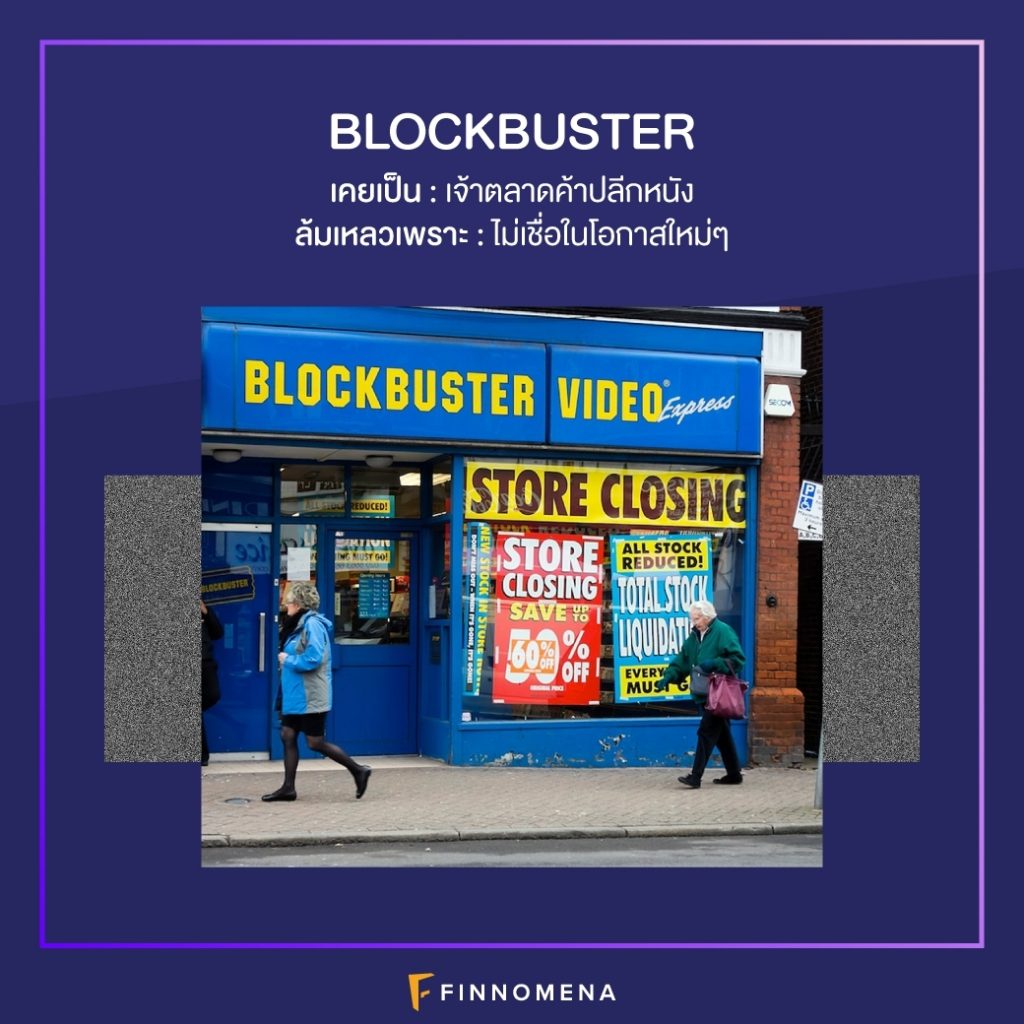 ในตอนนั้นเอง Netflix ที่ทำธุรกิจส่งหนังในรูปแบบ DVD ตามบ้าน ได้เข้ามาขอร่วมมือกับ BLOCKBUSTER แต่ก็โดนปฎิเสธ หลังจากนั้น BLOCKBUSTER ก็ทำธุรกิจสตรีมมิ่งออนไลน์ซึ่งก็ทำได้ดีมาก แต่ CEO ใหม่ที่เข้ามาบริหารในปี 2007 กลับไม่เชื่อในธุรกิจสตรีมมิ่งออนไลน์ และ BLOCKBUSTER ก็ต้องล้มละลาย 3 ปีต่อมา