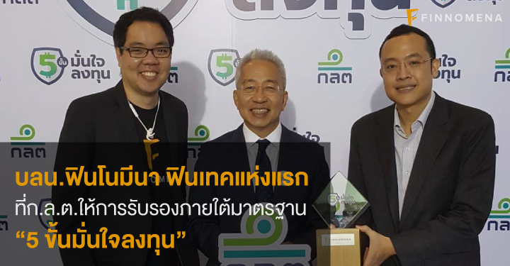 13 กันยายน 2561, กรุงเทพมหานคร – บริษัทหลักทรัพย์นายหน้าซื้อขายหน่วยลงทุน ฟินโนมีนา จำกัด ได้รับการรับรองมาตรฐาน “5 ขั้นมั่นใจลงทุน” จากสำนักงานคณะกรรมการกำกับหลักทรัพย์และตลาดหลักทรัพย์ (ก.ล.ต.) ตอกย้ำความเป็นผู้นำฟินเทคแห่งแรกที่พร้อมให้บริการให้คำแนะนำการลงทุนผ่านกองทุนรวมอย่างมีมาตรฐานภายใต้แพลตฟอร์ม “FINNOMENA”