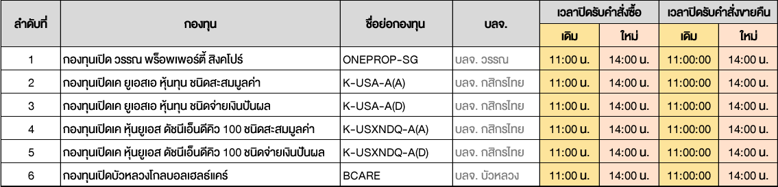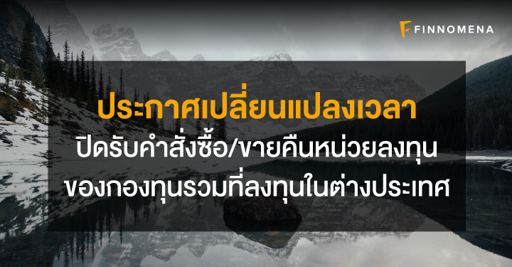 บริษัท หลักทรัพย์นายหน้าซื้อขายหน่วยลงทุน ฟินโนมีนา จำกัด (“บลน. ฟินโนมีนา”) ในฐานะตัวแทนซื้อขายหน่วยลงทุน ขอแจ้งเปลี่ยนแปลงเวลาปิดรับคำสั่งซื้อ/ขายคืนหน่วยลงทุนของกองทุนรวมที่ลงทุนในต่างประเทศ จำนวน 6 กองทุน โดยมีผลตั้งแต่วันที่ 18 มิถุนายน 2563 เป็นต้นไป ซึ่งมีรายละเอียดตามตารางต่อไปนี้