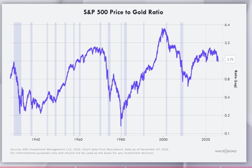 Cathie Wood แห่ง ARK Invest วิเคราะห์ถึงเวลาจบรอบขาขึ้นของราคาทองคำ และจะเป็นจังหวะซื้อหุ้นไม้ใหญ่ หลังกราฟ Gold Market Cap / M2 พุ่งสู่จุดสูงสุด ซ้ำรอยประวัติศาสตร์ยุค Great Depression 30’s และ Great Inflation 80’s
