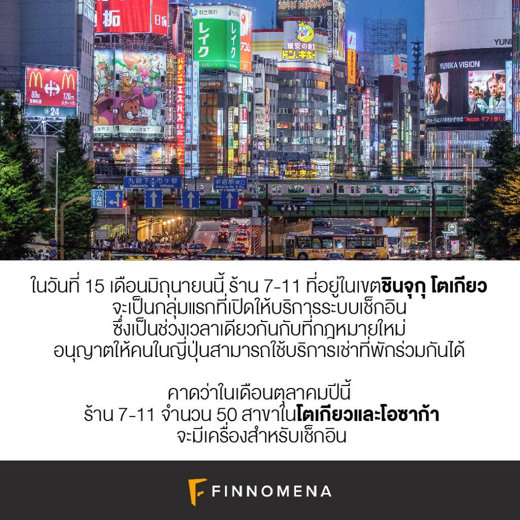 จุดเช็กอินใน 7-11 ญี่ปุ่นจะเริ่มเปิดให้บริการในเดือนมิถุนายน ซึ่งเป็นช่วงที่กฎหมายญี่ปุ่นจะอนุญาตให้ธุรกิจแชร์บ้านพักเป็นธุรกิจถูกกฎหมายแล้ว