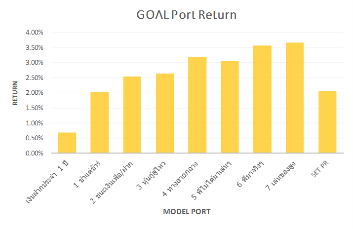 รูปที่ 1 ผลตอบแทนแต่ละระดับความเสี่ยงของ GOAL Model vs เงินฝาก และดัชนี SET