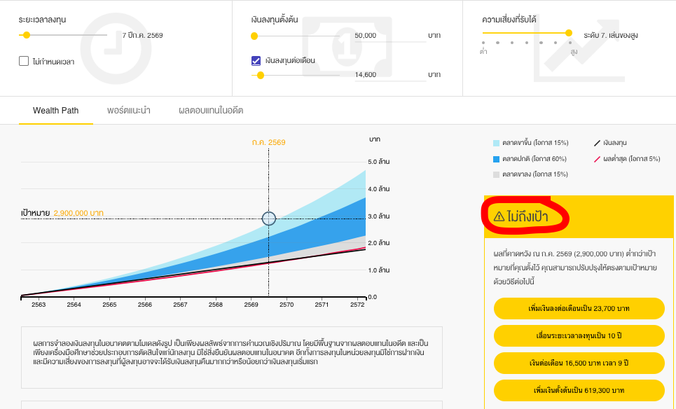 4. ก็จะได้กราฟนี้มา ซึ่งด้านขวาบอกเราว่า “ไม่ถึงเป้า” พร้อมหนทางแก้ไขว่าทำอย่างให้ถึงเป้า