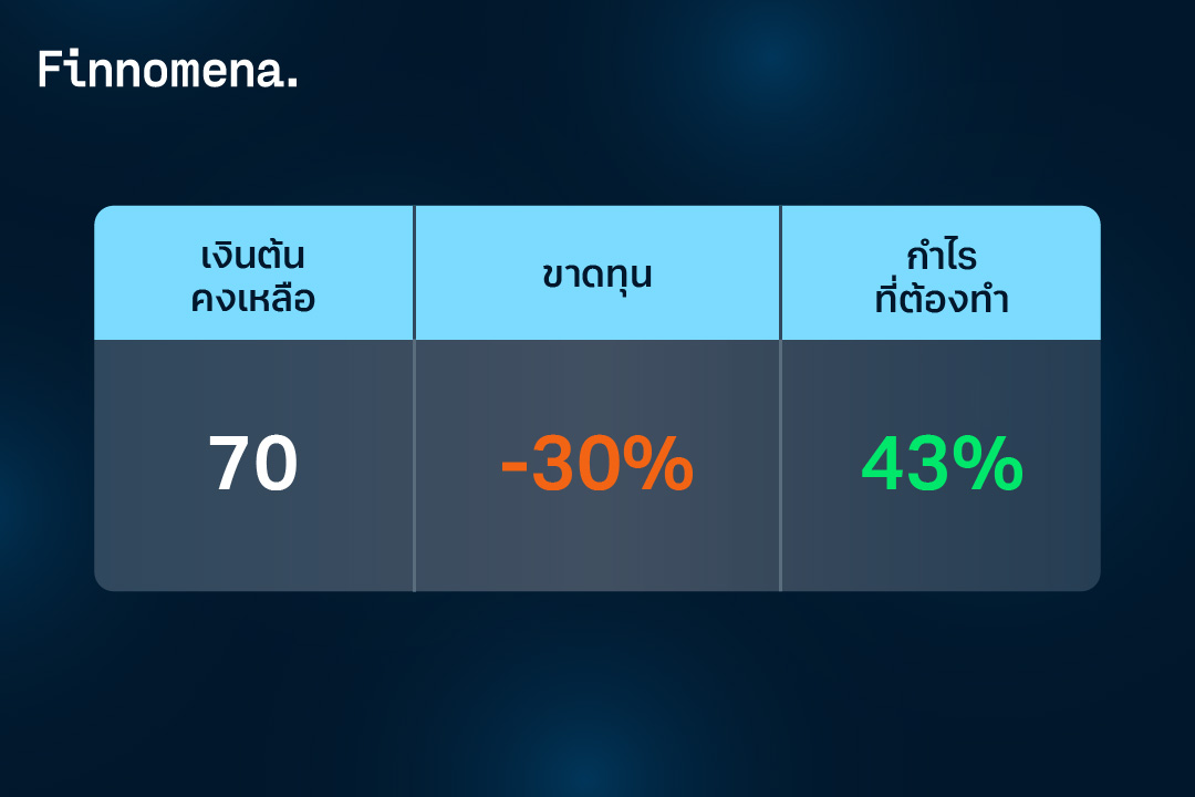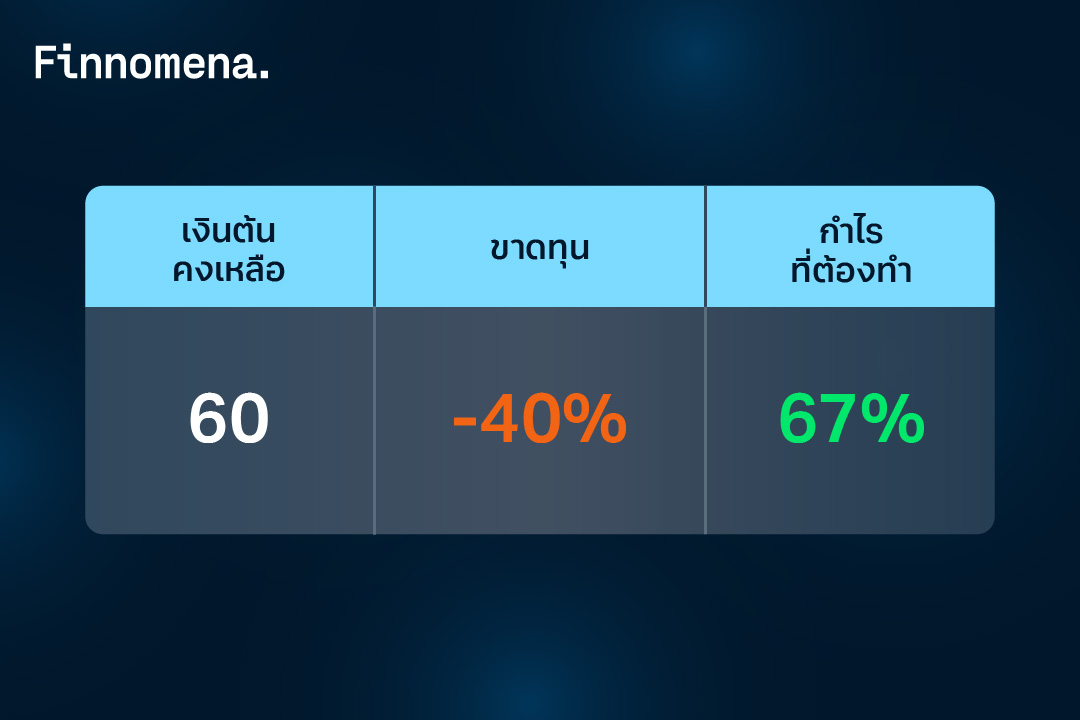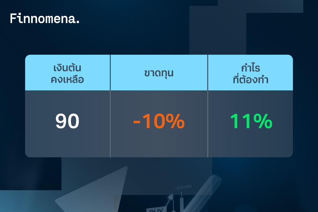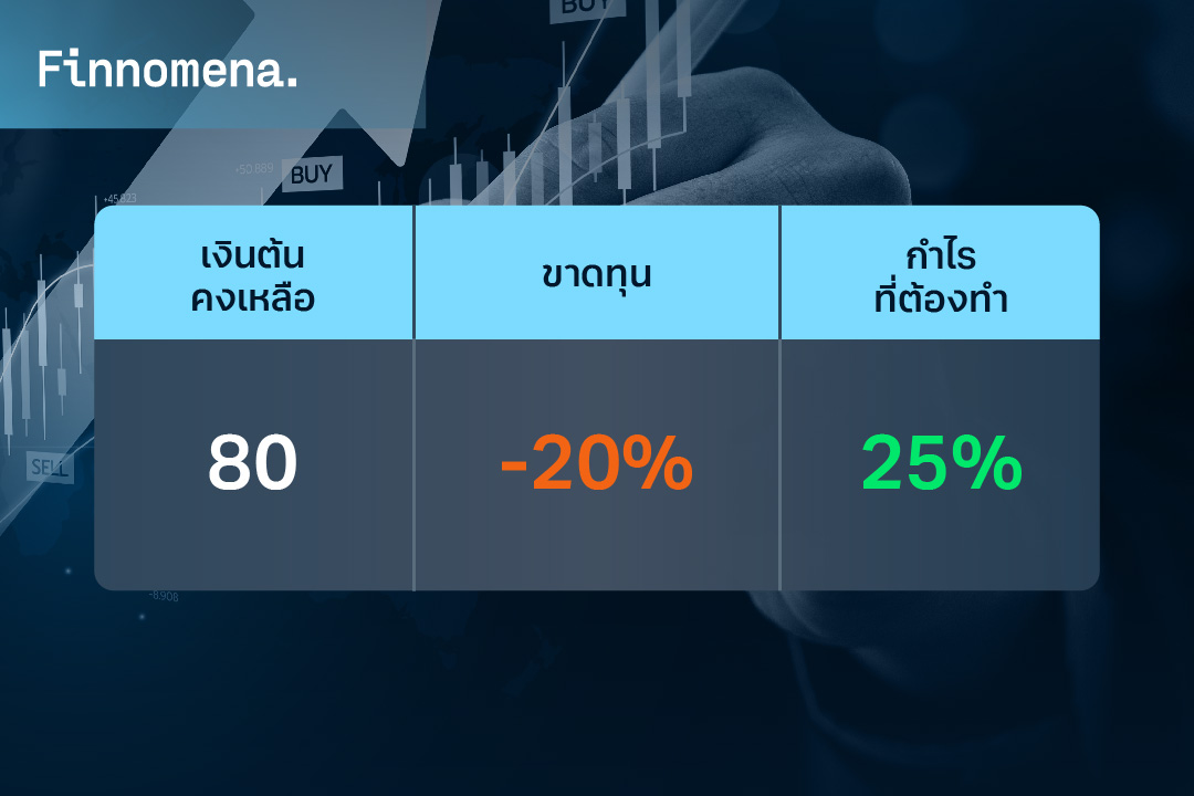 - ยิ่งขาดทุนมาก ยิ่งต้องทำกำไรเพิ่มขึ้นเป็นทวีคูณเพื่อกลับมาเท่าเดิม