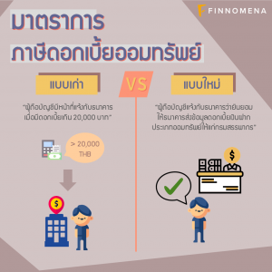 จากเดิมที่ผู้ฝากเงินมีหน้าที่ต้องแจ้งให้ธนาคารรับรู้เมื่อได้รับดอกเบี้ยรวมทุกบัญชีเกิน 20,000 บาท เพื่อให้ธนาคารเป็นคนที่ทำการหักภาษีเงินได้ ณ ที่จ่ายและนำส่งกรมสรรพากร
