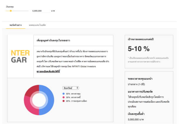 บริการของ FINNOMENA PORT มีเป้าหมายสร้างผลตอบแทนปีละ 5-15% ต่อปี โดยนักลงทุนสามารถเลือกได้ว่าต้องการผลตอบแทนเท่าไหร่ และสามารถรับความเสี่ยงได้มากแค่ไหน