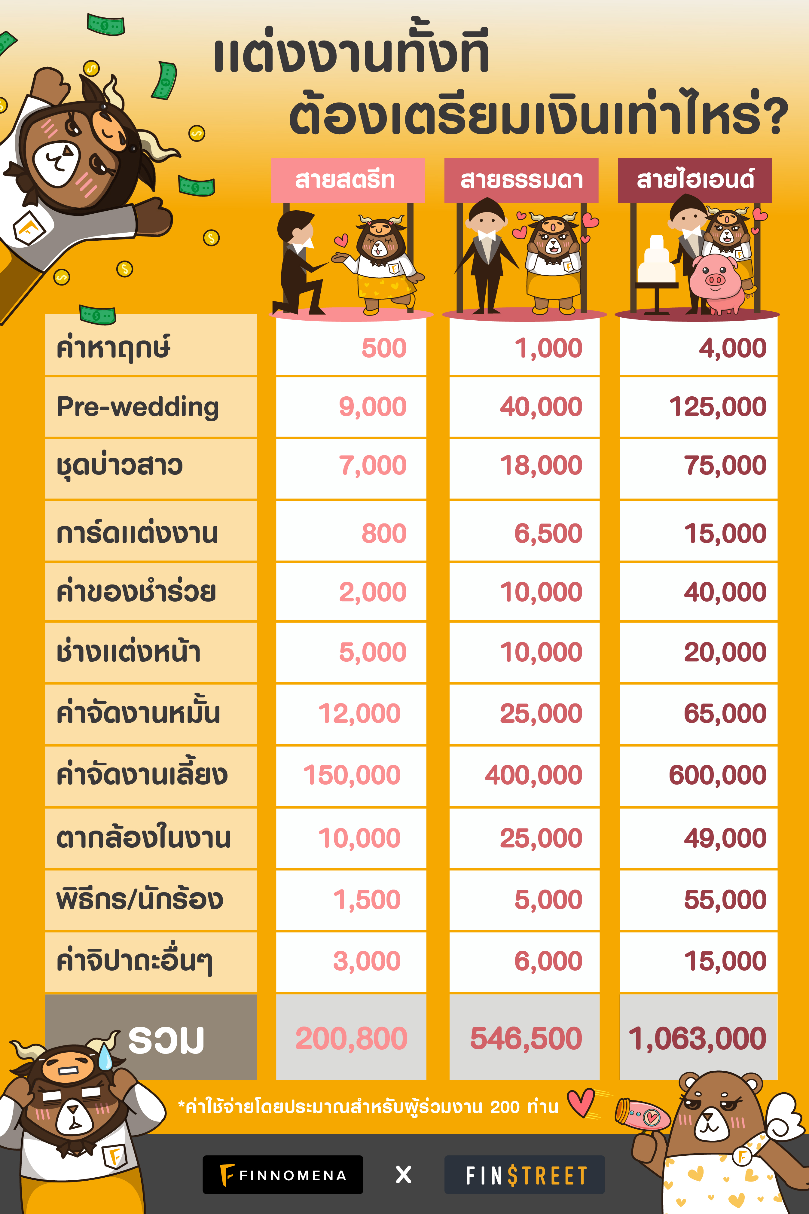 สำหรับคู่รัก การแต่งงานถือเป็นอีกพิธีการที่มีความสำคัญ แน่นอนว่าใครๆ ก็ต้องอยากทำให้ประทับใจกันทั้งนั้น เราลองมาดูกันว่าควรวางแผนเงินจัดงานแต่งงานไว้ประมาณเท่าไร มีทั้งสายสตรีท ธรรมดา และไฮเอนด์ !!