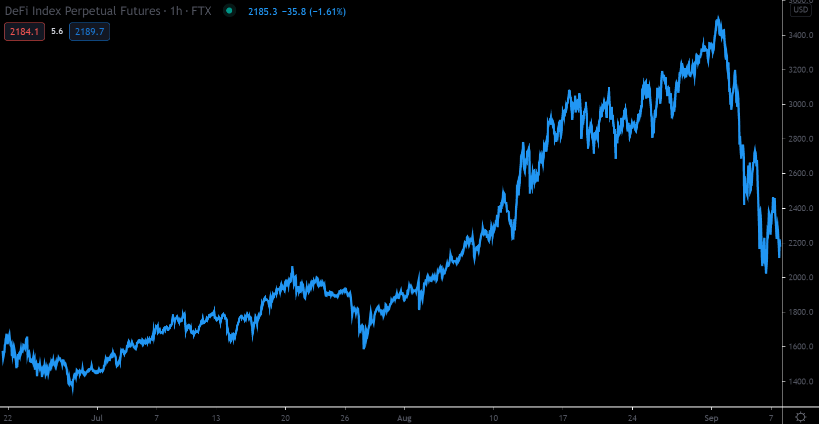 เนื่องจาก DeFi มีความเกี่ยวข้องกับระบบการเงินที่บางธุรกรรมก็ยังมีความซับซ้อนในตัวของมันเอง อีกทั้งยังเป็นเรื่องใหม่ที่เกี่ยวกับเทคโนโลยี ทำให้การจะเข้าไปศึกษา เข้าไปตรวจสอบ จำเป็นต้องมีพื้นความรู้ในเรื่องของเทคโนโลยีใหม่ เช่น Blockchain , Smart Contract และเหรียญคริปโตอื่น ๆ ที่อาจต้องนำมาวางประกัน ฉะนั้นการจะเข้าสร้างโอกาสในการลงทุนนั้นอาจจะไม่ใช่เรื่องง่าย ไม่ว่าจะเข้ามาในระบบของ DeFi ผ่านแอปพลิเคชันไหนก็ตาม หรือเข้ามาเก็งกำไรเพื่อหาส่วนต่างราคา ทุกคนจำเป็นจะต้องศึกษาหาข้อมูลให้ดี เพราะการลงทุนในสินทรัพย์ดิจิทัล ก็เปรียบเหมือนการลงทุนในเทคโนโลยีใหม่ที่มีการเปลี่ยนแปลงตลอดเวลา อีกส่วนหนึ่งที่สำคัญมาก ๆ เลยก็คือ ราคาของเหรียญที่เกี่ยวกับ DeFi ถูกไล่ราคาขึ้นมาสูงมากในระยะเวลาสั้น ๆ นั่นแปลว่าหากเราไม่ดูตาม้าตาเรือ เข้าผิดที่ผิดทางก็อาจจะเสียหายหนักได้เลยนะครับ ก่อนจะจบบทความนี้ ผมอยากจะแชร์ Basket of Decentralized Finance หรือก็คือการเอาเหรียญแต่ละเหรียญใน DeFi มารวมกันแล้วคำนวณด้วยวิธีถ่วงน้ำหนักออกมาเป็นดัชนีที่ชื่อว่า DeFi Index Perpetual Futures คือสัญญาซื้อขายล่วงหน้าแบบ Continue ที่อ้างอิงกับเหรียญ DeFi ซึ่งเราสามารถติดตามภาพรวมของ DeFi ได้อย่างใกล้ชิดว่าราคาของเป็นอย่างไร ช่วงไหนได้รับความนิยม ช่วงไหนราคาถูกเทขายอย่างรุนแรงเพื่อเป็นการศึกษาและประกอบการตัดสินใจครับ