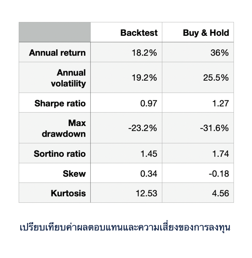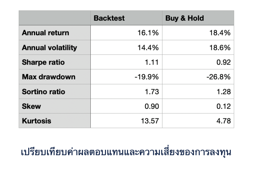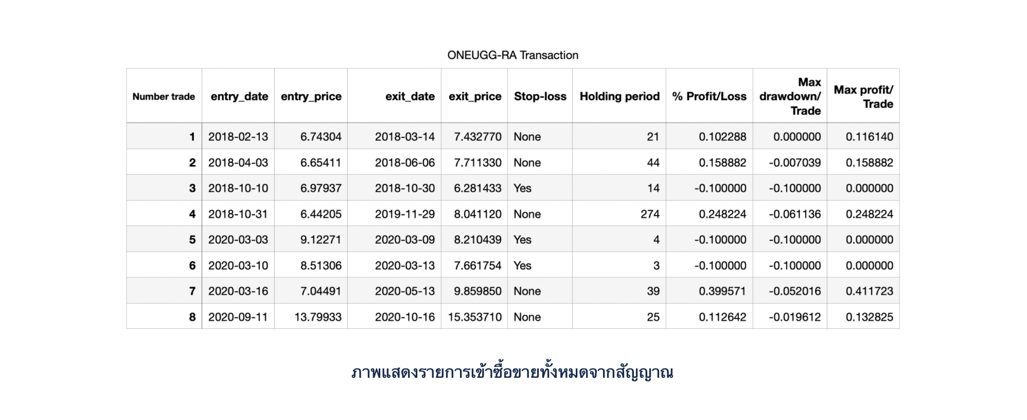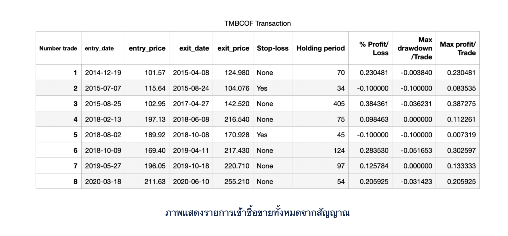 - ช่วงเวลาที่ทำการทดสอบ 1/1/2015 ถึง 31/10/2020